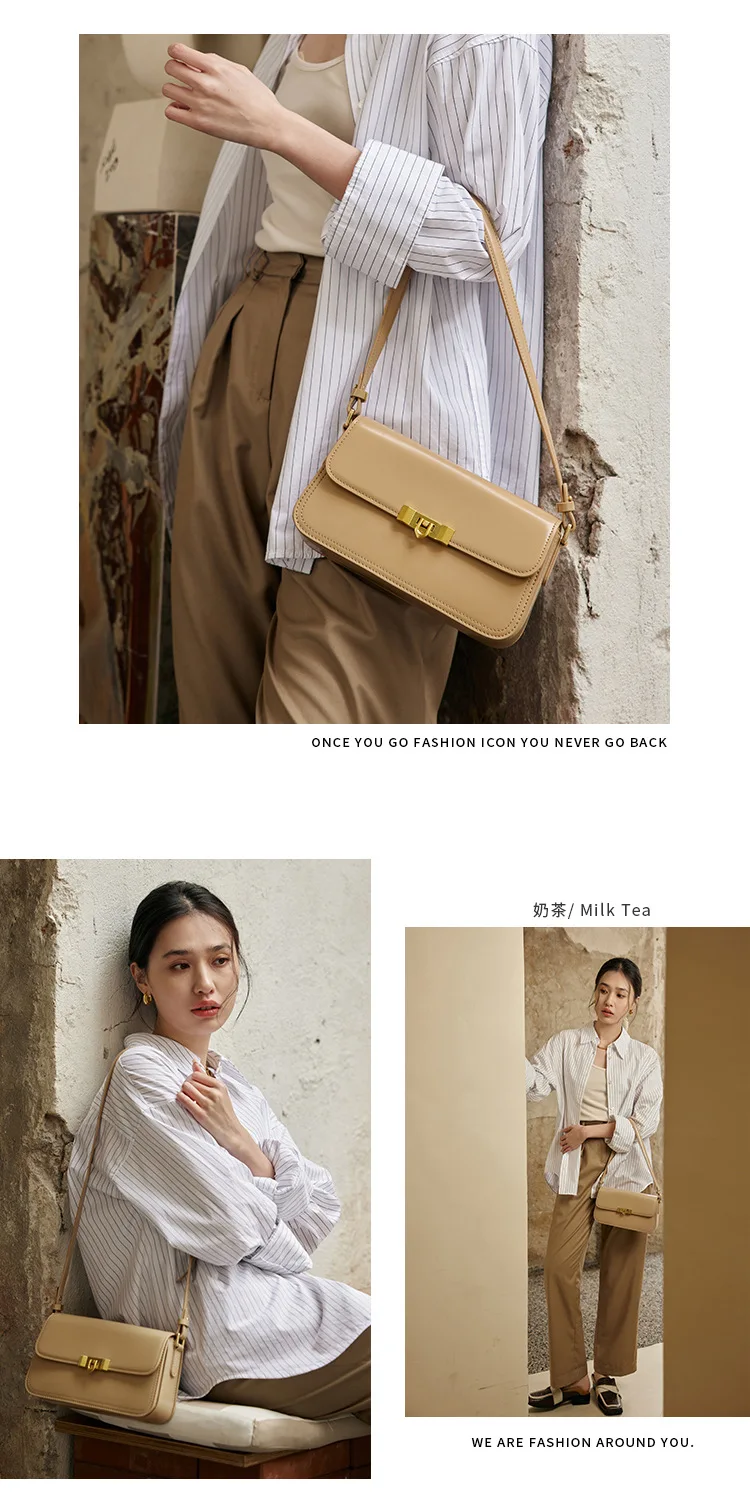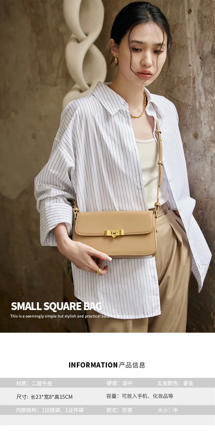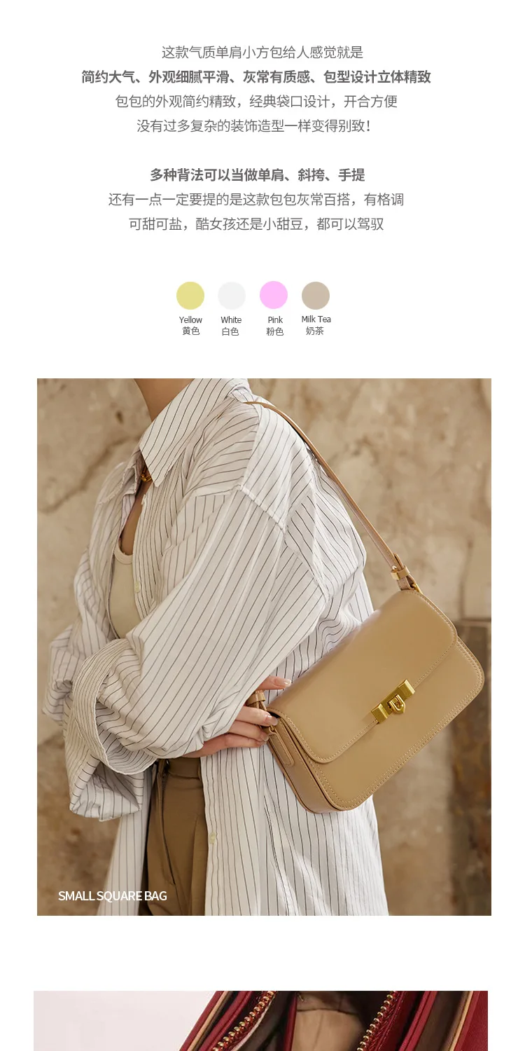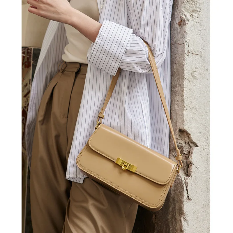 2025 New High-End Women’s Genuine Cowhide Leather Crossbody Bag Light Luxury High-end Lock Buckle Small Square Shoulder Bag