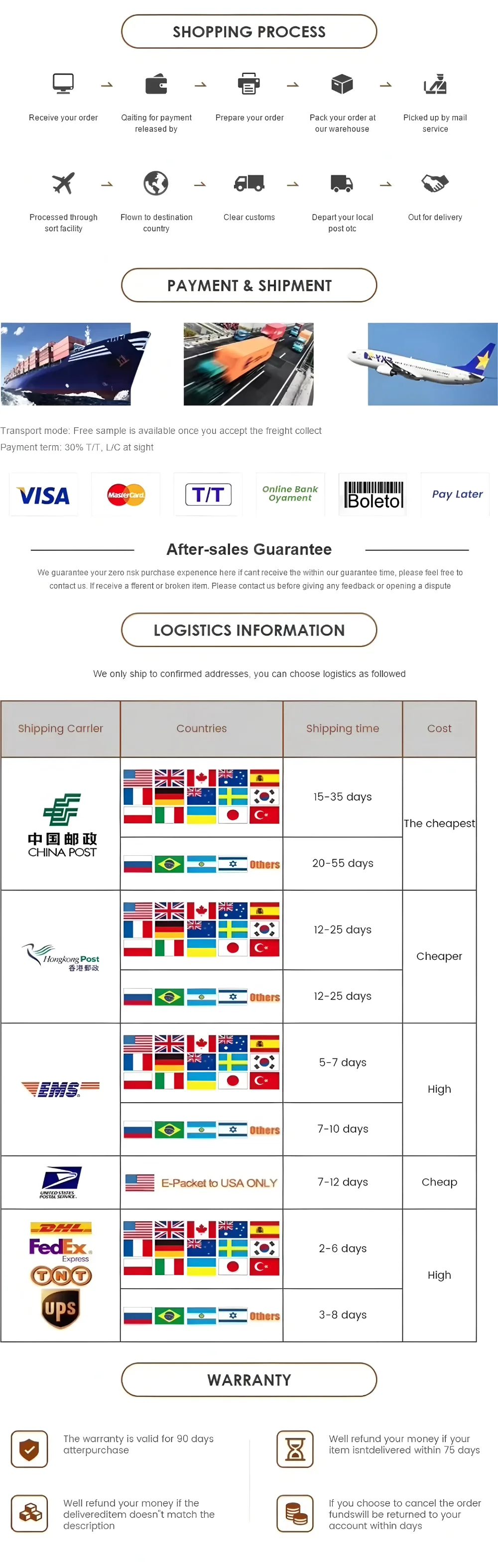 * transportation | DHL. TNT. FedEx. UPS. Express delivery. electronic parcels. China Post Air Mail shipping. etc. |