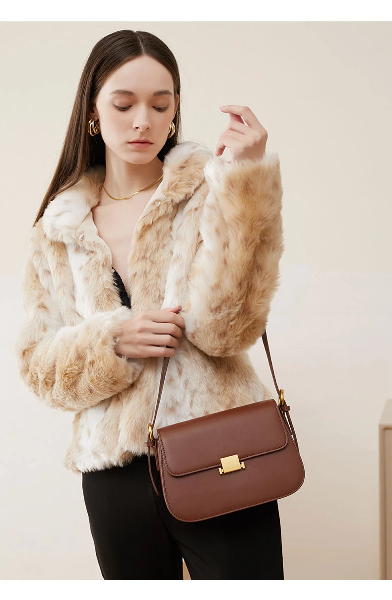 Fashion Design Hot Sale Customize Shoulder Bag Lady Genuine Leather Saddle Bags Flap Closure Women's Shoulder Bag