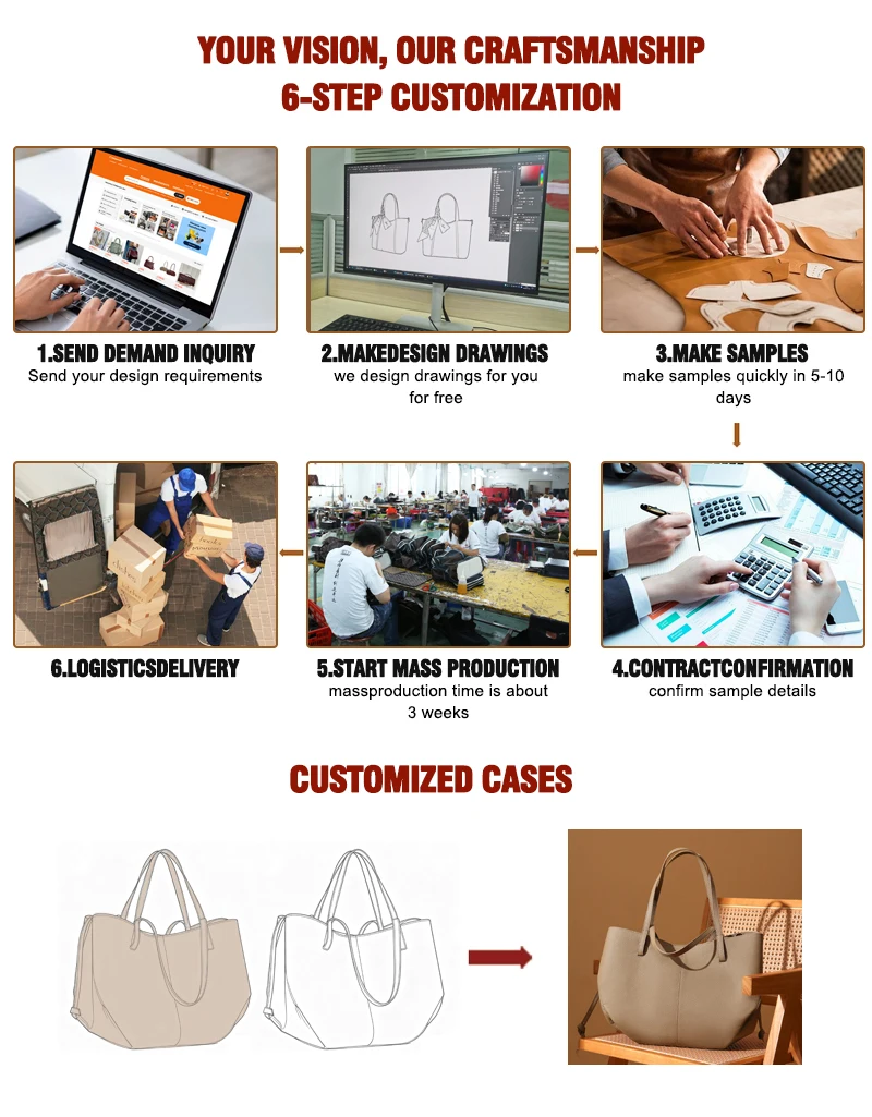 Guangzhou Mingkou Leather Co.. Ltd. is a manufacturer specializing in the design development customization and other comprehensive services of mid-to-high-end cowhide women's handbags