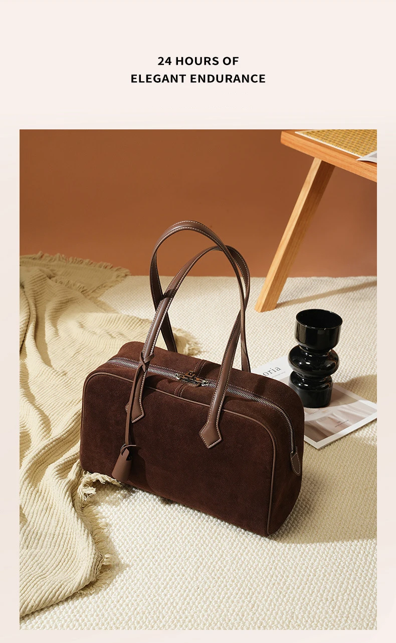 Be the first to review “Women Business Premium Versatile Boston Bag 2025 New Suede Leather Bowling Handbag Large Capacity Underarm Single Shoulder Pack” Cancel reply