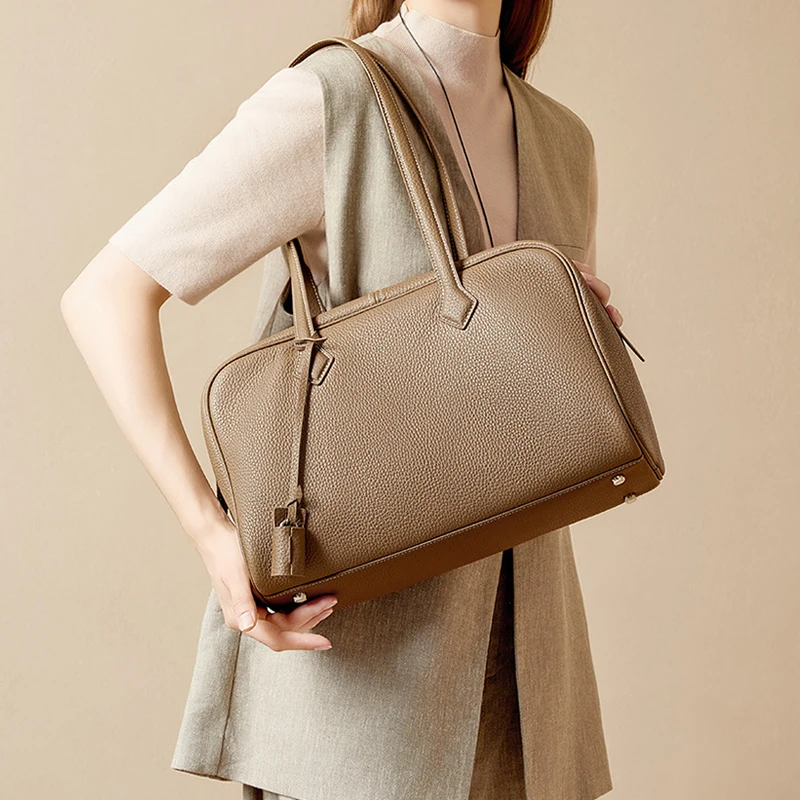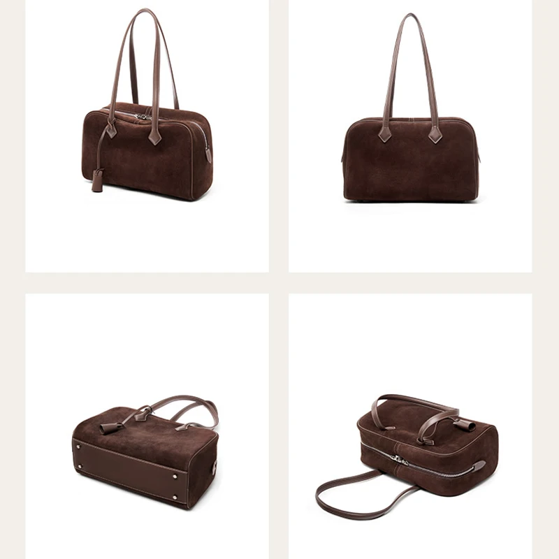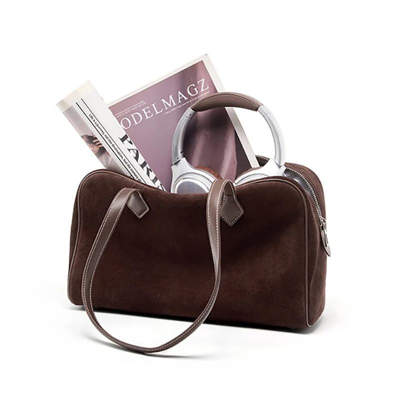 Women Business Premium Versatile Boston Bag 2025 New Suede Leather Bowling Handbag Large Capacity Underarm Single Shoulder Pack